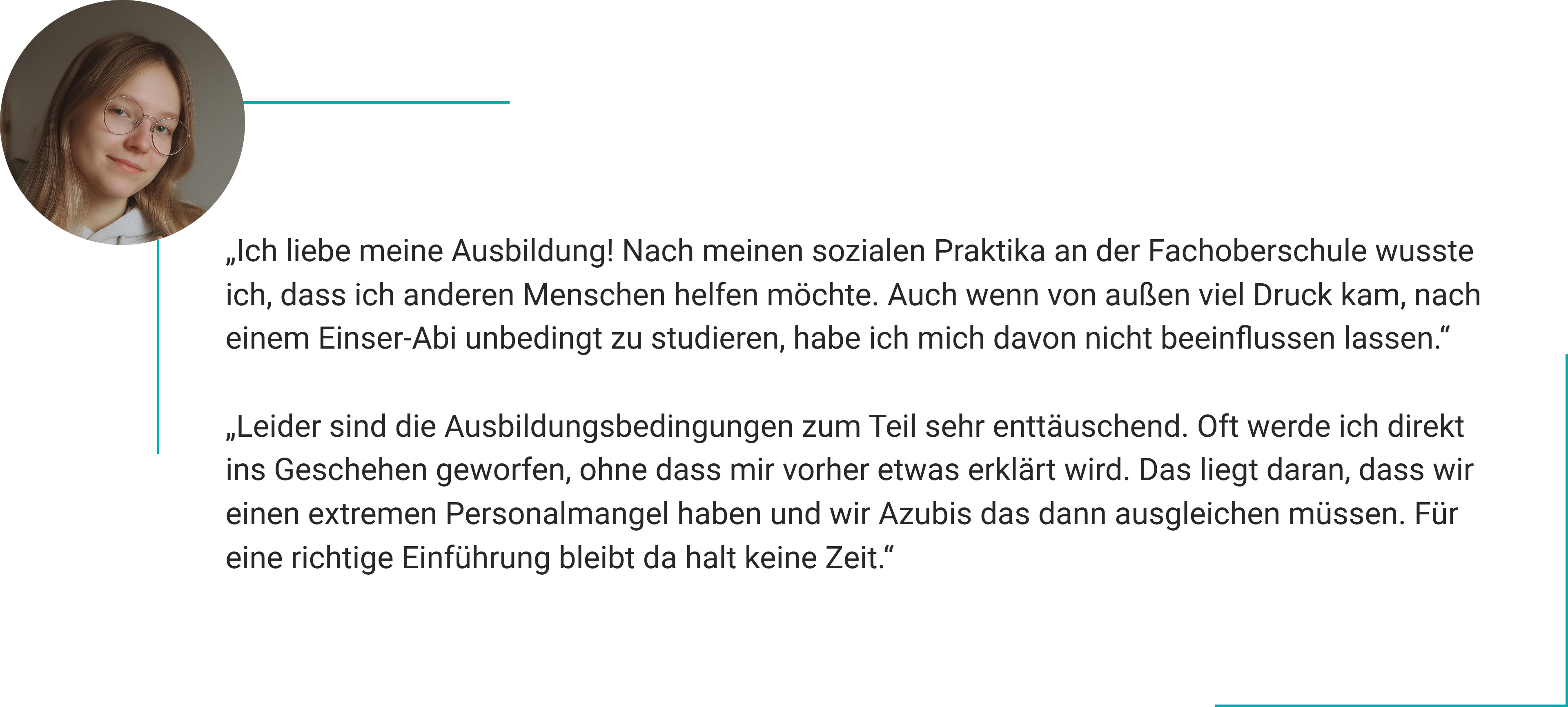 Das Klischee vom faulen Azubi hält sich hartnäckig, obwohl aktuelle Studien und Berichte ein ganz anderes Bild zeichnen. Wir haben mit Lena gesprochen. Sie ist 19 Jahre alt, gehört zur Generation Z und kann sich mit keinem der gängigen Klischees identifizieren. Im zweiten Ausbildungsjahr zur Heilerziehungspflegerin beschreibt sie ihre Situation so:
